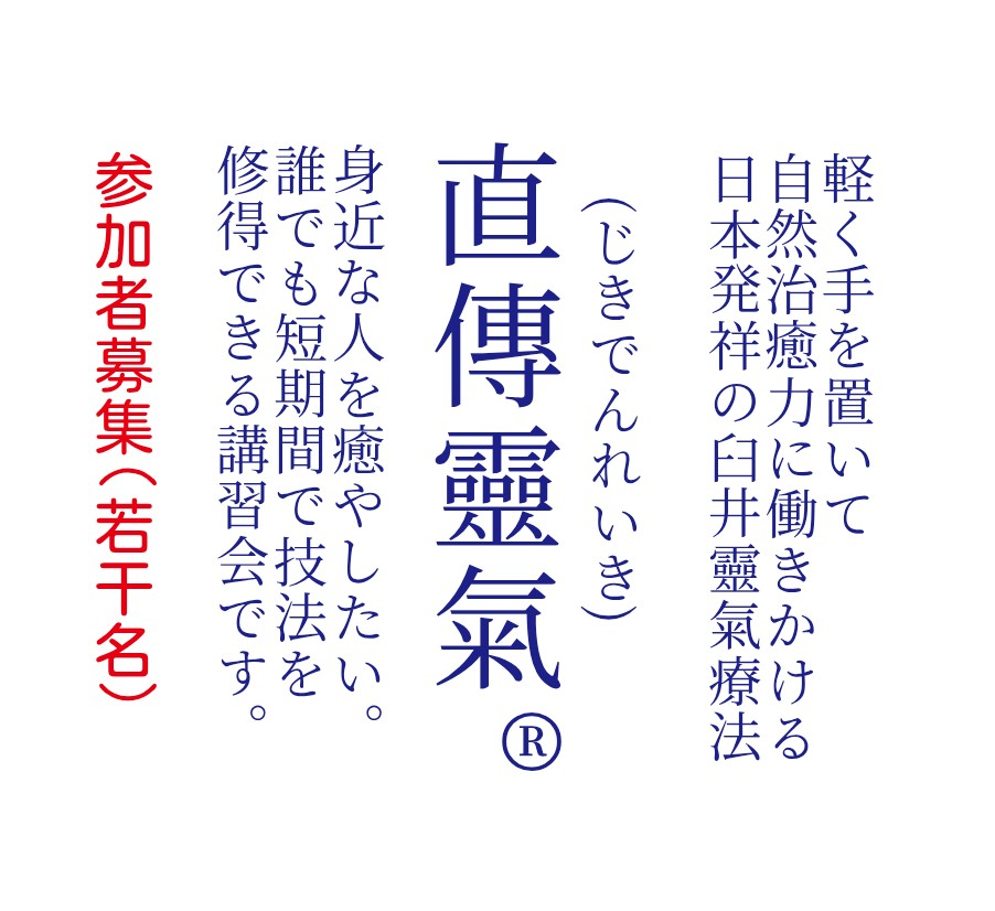 直傳靈氣は不調なところに手を置くだけで自然治癒力を活性化する技法です。
